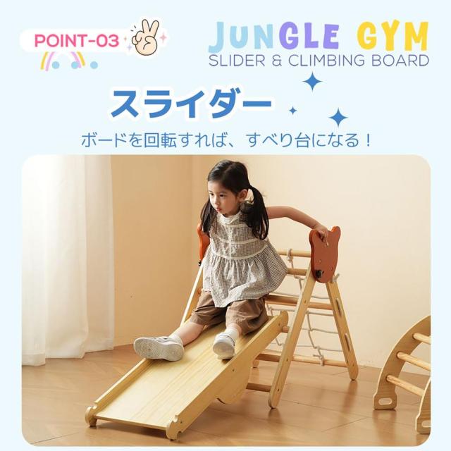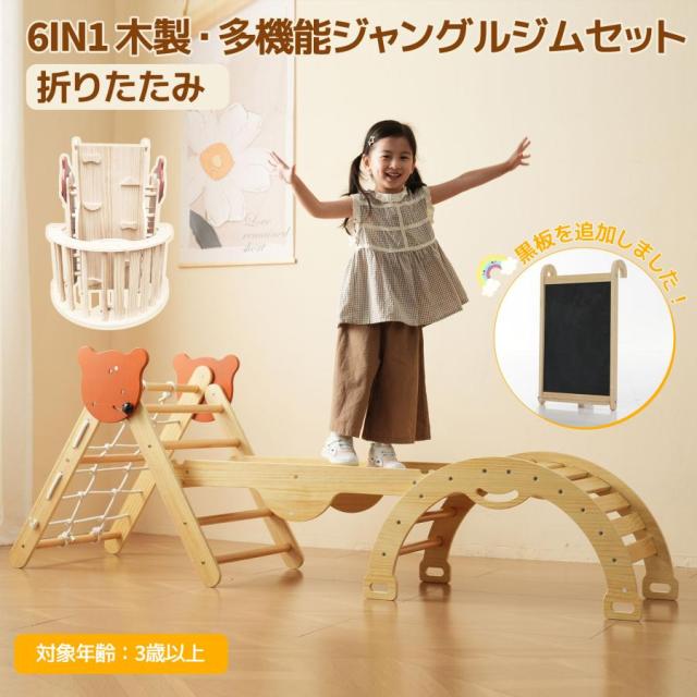 「クーポン配布中」ジャングルジム 6in1 天然木 すべり台 滑り台 折りたたみ 黒板付き 耐荷重50kg コンパクト 多機能 木製 屋内 室内用 大型遊具 室内遊具 キッズ 室内 おもちゃ 幼児 子供 誕生日プレゼント クリスマス ギフト
