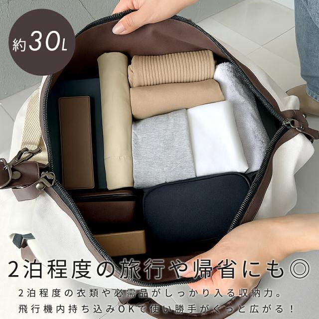 メンズ・レディース兼用のユニセックスデザインで、小さめなのにしっかり入る大きい30L大容量ボストンバッグ
