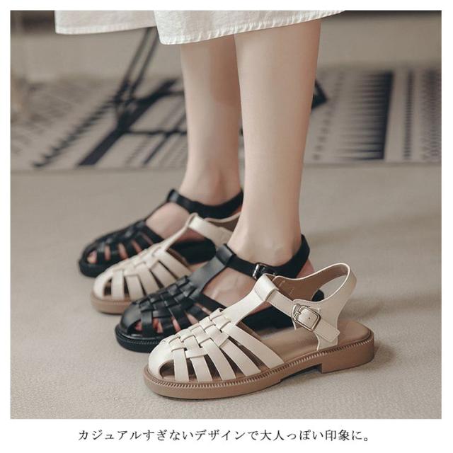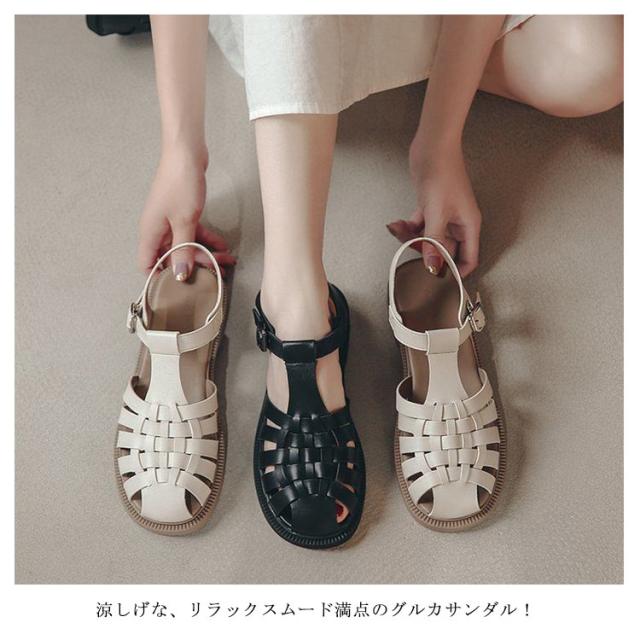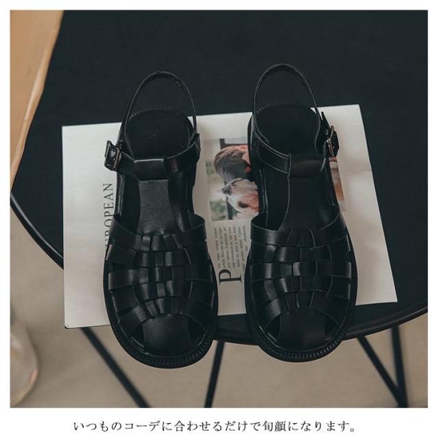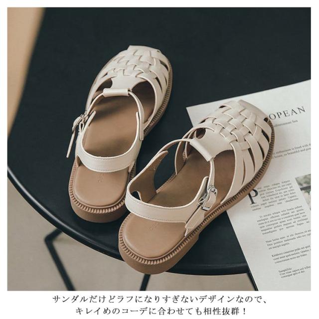 ストラップ 前詰まり 秋 サンダル つっかけ 厚底 グルカサンダル 歩きやすい 大きいサイズ ウェッジソール ぺたんこ ベルトサンダル スクエアトゥ サボ シューズ フラットサンダル 編み込みサンダル ヒール 春 夏 レディース