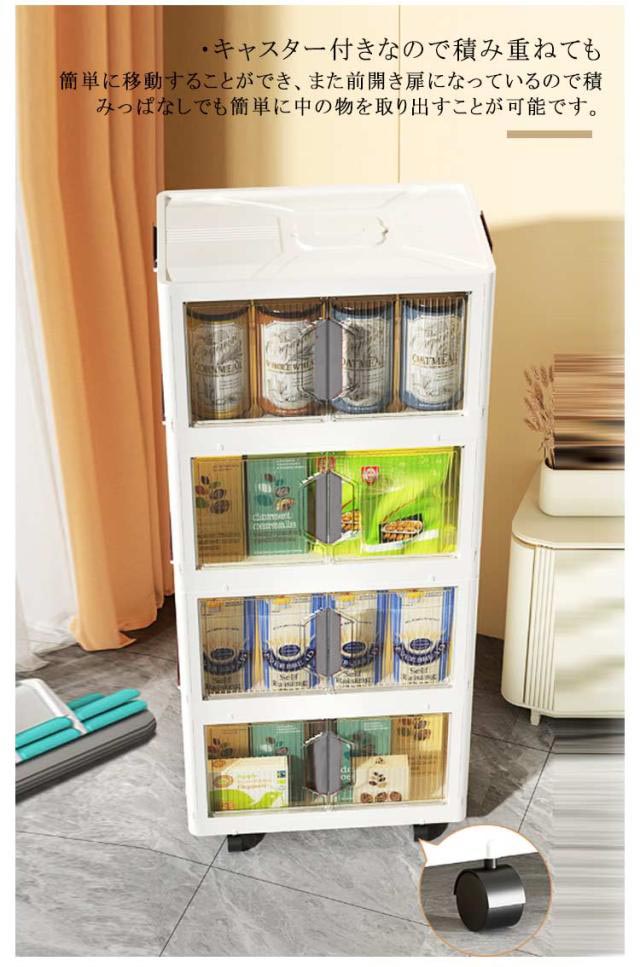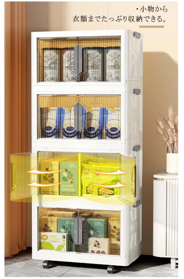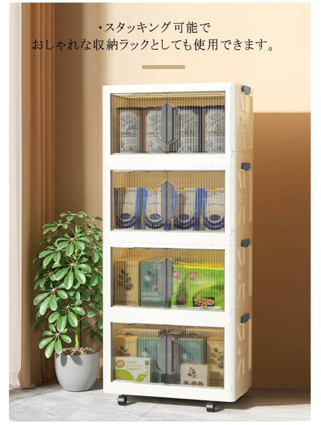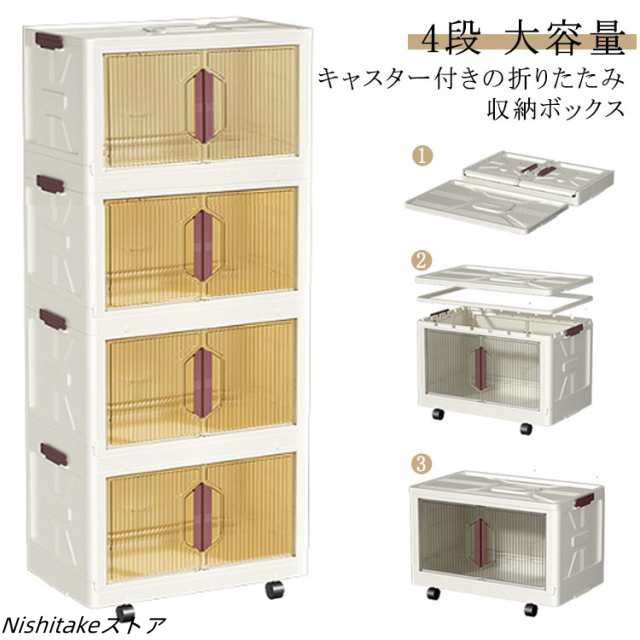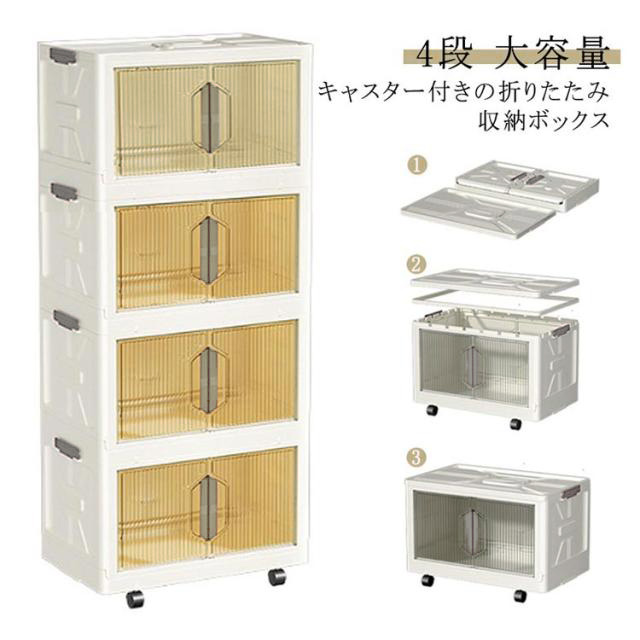 収納ボックス 収納ケース 4段 キャスター付き 折りたたみ 収納棚 大容量 前開き 扉付き フタ付き 蓋付き 組み立て不要 積み重ね a4 衣装ケース 衣替え コミック DVD 収納BOX おもちゃ箱 キッチン 洗面所 リビング 子供部屋 小物 整理