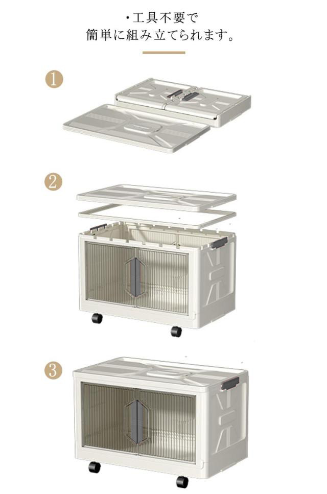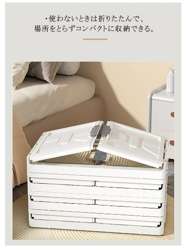 | ・キャスター付きの折りたたみ収納ボックス ・使わないときは折りたたんで、場所をとらずコンパクトに収納できる。 ・スタッキング可能でおしゃれな収納ラックとしても使用できます。 ・キャスター付きなので積み重ねても簡単に移動することができ、また前開き扉になっているので積みっぱなしでも簡単に中の物を取り出すことが可能です。 ・小物から衣類までたっぷり収納できる。 ・工具不要で簡単に組み立てられます。 | |