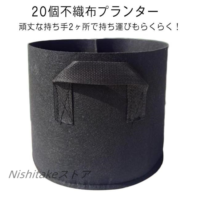 | 20個不織布プランター。 頑丈な持ち手2ヶ所で持ち運びもらくらく! 【通気性・透水性】不織布で作られて、通気性、透水性に優れているので植物の発育に適しています。無公害、環境にやさしく、再利用可能の植え袋です。 【丈夫な持ち手】ハンドルはクロスステッチでしっかりと縫製されるのでより耐久性があり、移動中持ち手が落ちる心配を掛けません。鉢自体もかなり軽量なので、季節の日当たりや、天気に合わせて移動管理が楽です。 【植物の成長環境】植物成長バッグを使用することで、通気性と水はけが良く、より健康で元気に育ちます。不織布の植木鉢は、洗えるし、掃除が簡単で、毎年再利用できます。 【適用シーン】庭の花、野菜の植え付け(ジャガイモ、トマト、コショウ、ほとんどの緑の野菜)、苗の移植、屋内と屋外の植物の装飾、家の植え付け、温室の植え付け。 | |