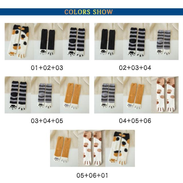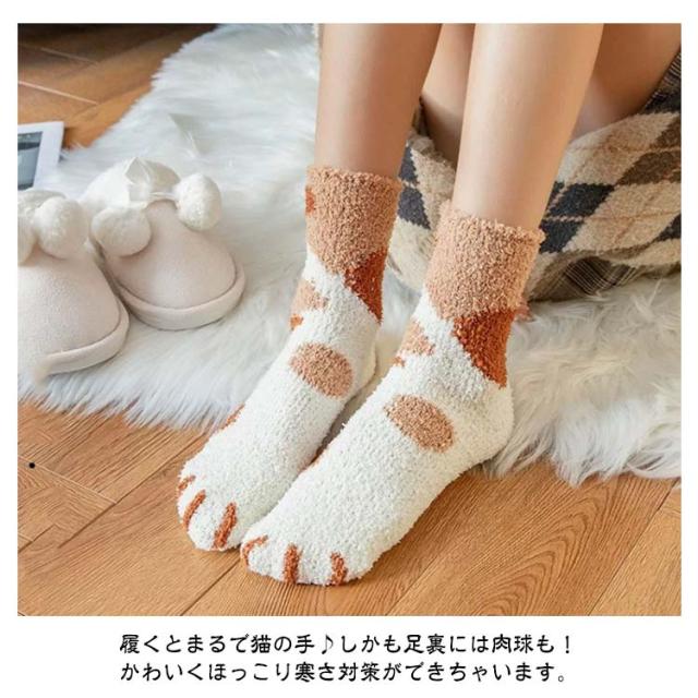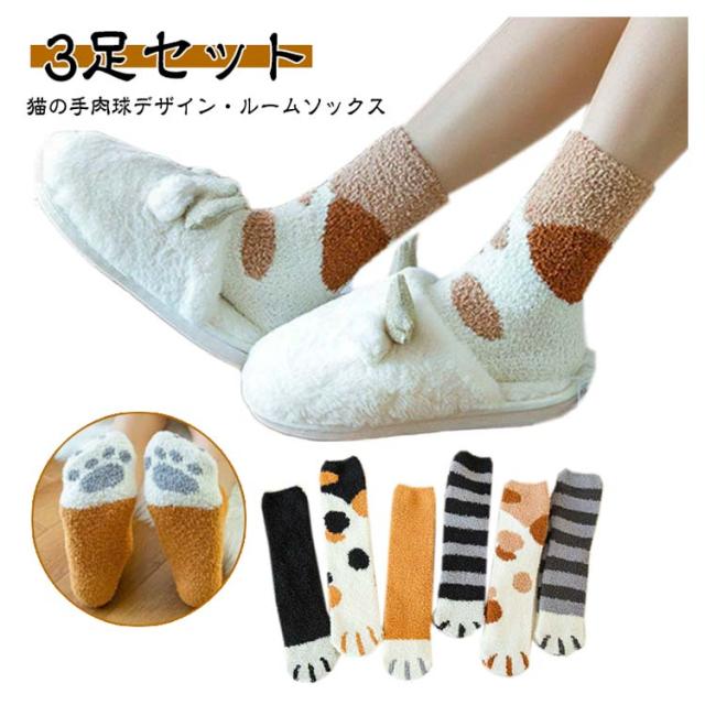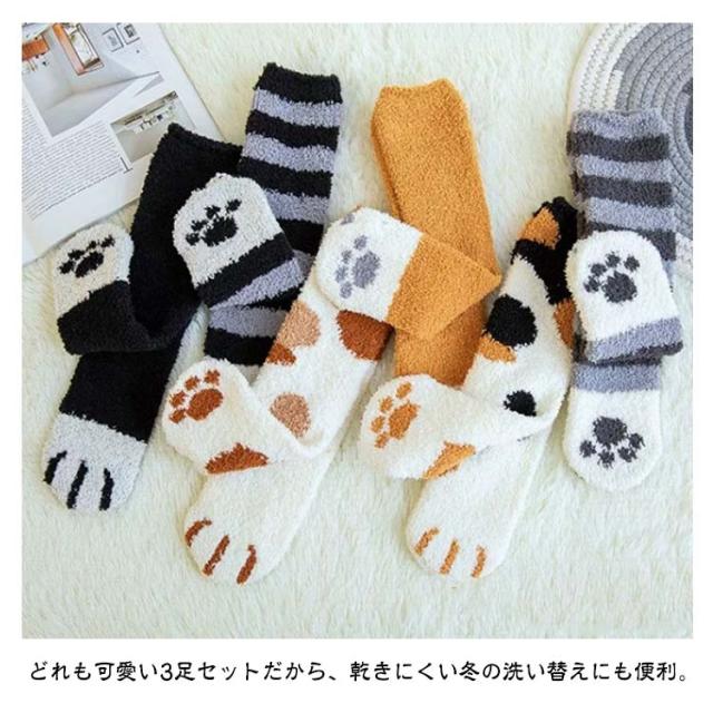 猫の手肉球デザイン 3足組 冬 もこもこ 靴下 レディース 可愛い あったか 3足組 厚手 冷え取り靴下 暖かい ふわふわ おしゃれ あったか靴下 くつした 保温 防寒 プレゼント
