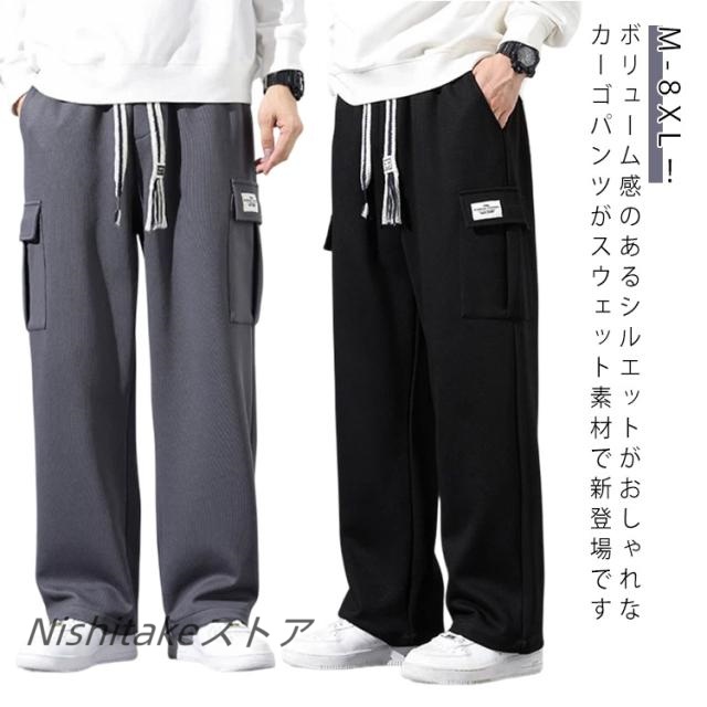スウェットパンツ ワイドパンツ メンズ 綿 ストリート 長ズボン 大きいサイズ ウエストゴム ゆったり カーゴ ボトムス 無地 スウェットパンツ アメカジ カジュアル カーゴパンツ カーゴポケット 春 秋 冬 秋服 冬服