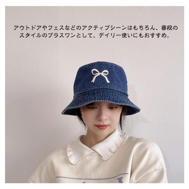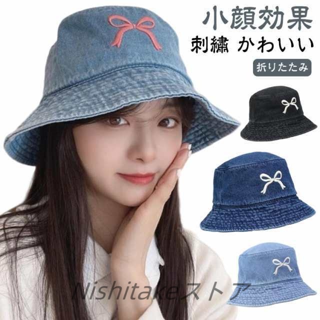 デニム バケットハット 深め レディース 帽子 UVカット 春夏 ハット バケット つば広 リボン 刺? かわいい おしゃれ 日よけ 遮光 完全遮光 小顔効果 折りたたみ サイズ調整 春 夏 日除け帽子 日焼け防止 デニム帽子 韓国 通勤 通学 旅行 散歩 お出かけ 大人可愛い