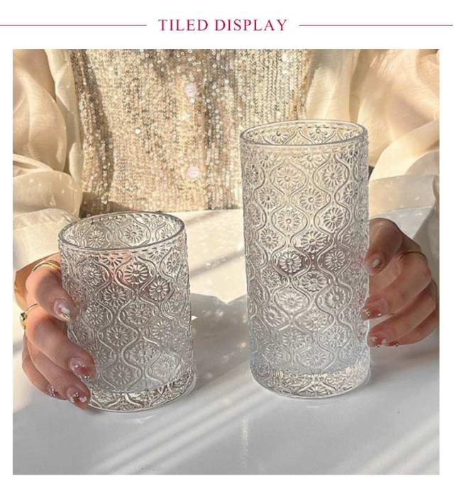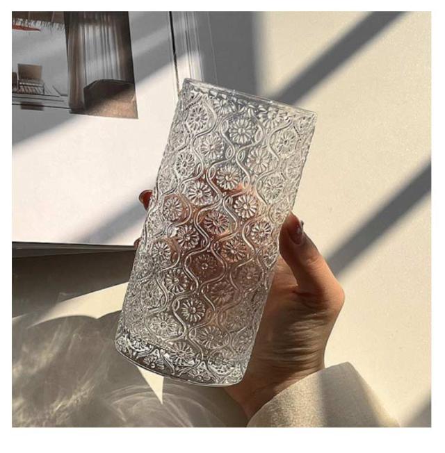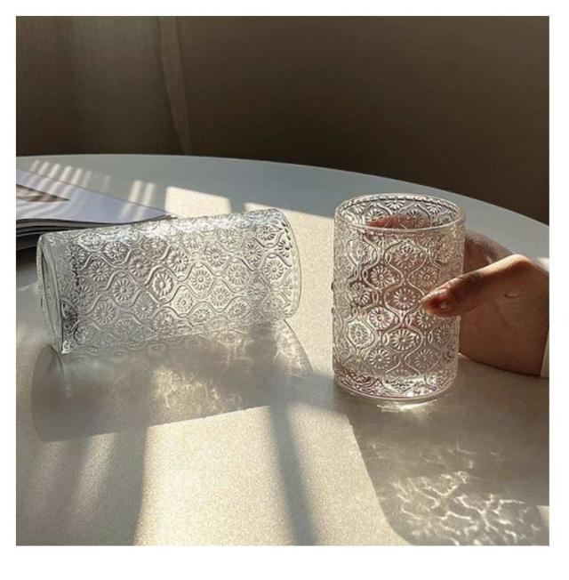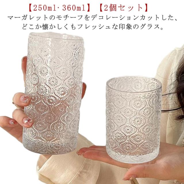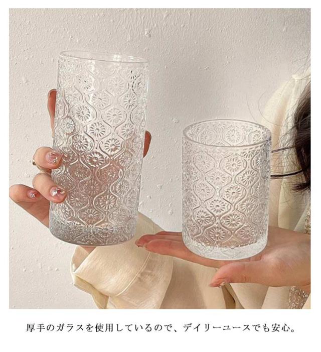 レトロ クリア コップ コーヒー タンブラー ミルク 250ml マーガレット 総柄 ヴィンテージ 大きめ ロックグラス グラス ガラス ガラスカップ ガラスコップ 2個セット 360ml 麦茶 冷茶 透明 ドリング 北欧 おしゃれ ガラス 酒器 ウィスキー