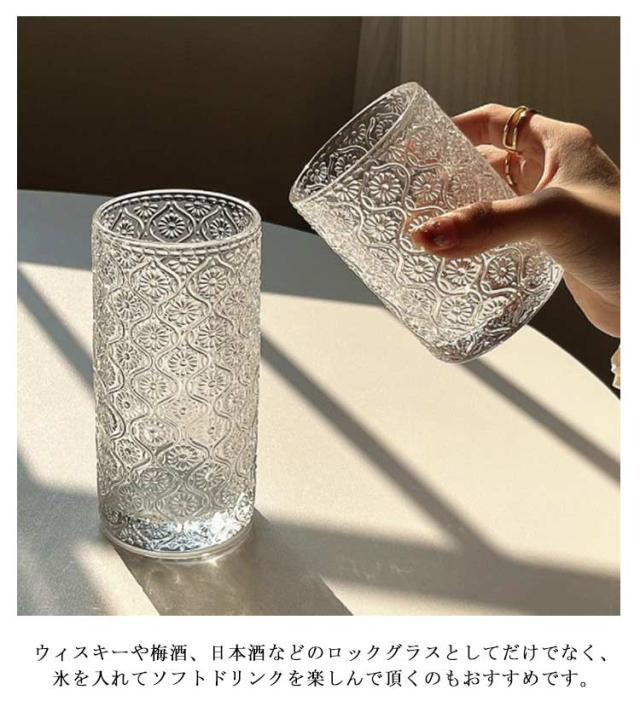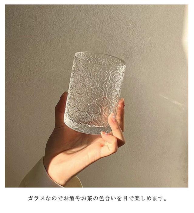 | マーガレットのモチーフをデコレーションカットした、どこか懐かしくもフレッシュな印象のグラス。【250ml?360ml】【2個セット】 厚手のガラスを使用しているので、デイリーユースでも安心。 ウィスキーや梅酒、日本酒などのロックグラスとしてだけでなく、氷を入れてソフトドリンクを楽しんで頂くのもおすすめです。 ガラスなのでお酒やお茶の色合いを目で楽しめます。 お家時間に自分で使うのもよし、引っ越し祝いなどプレゼントやギフトにもおすすめです。 | |