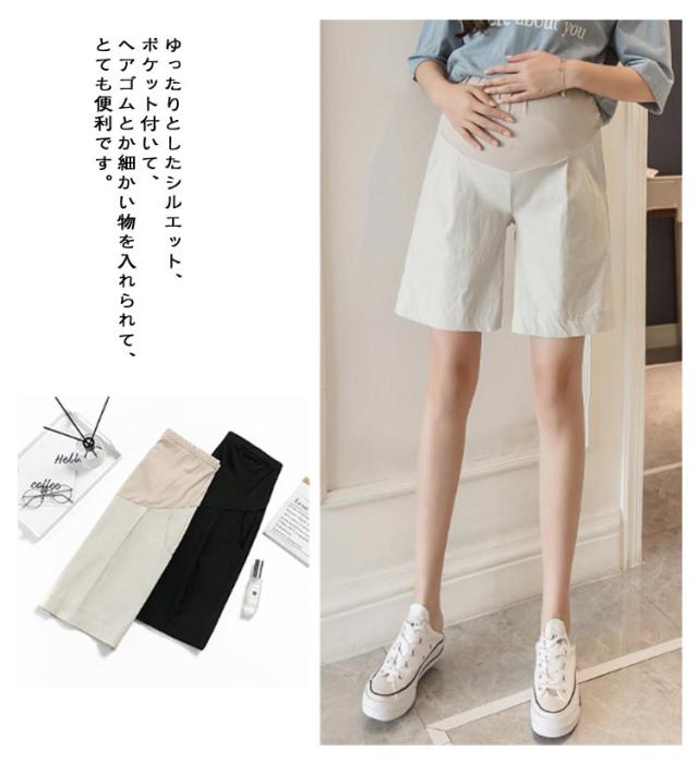 | 5分丈なので、暑い夏にシンプルで穿きやすいマタニティショートパンツ! アジャスター付きで、日々大きくなるお腹にも長時間の着用で窮屈感がなく快適です。 汗によるベタつきを軽減し履き心地が良く、蒸し暑く感が殆どありません。 スーツ素材、お腹部分は手触り良い綿生地を使って通気性が良く、ソフトな肌触り。 ゆったりとしたシルエット、ポケット付いて、ヘアゴムとか細かい物を入れられて、とても便利です。 | |