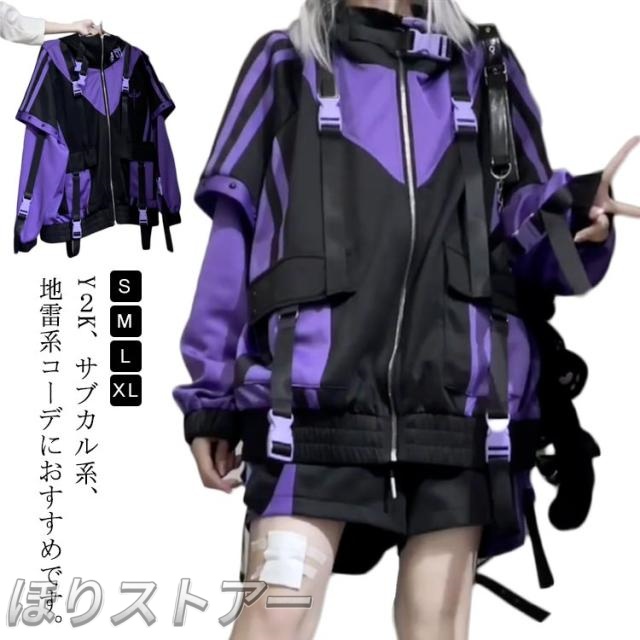 パープル パーカー 地雷系 天使の羽 機能服 Y2K ジップアップ 刺繍 薄手 男女兼用 服 ジャージ トップス レディース パープル アウター メンズ ジャケット 長袖 春 秋 黒 紫 コート 十字架 フードつき ダンス衣装 ヒップホップ