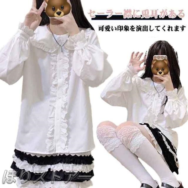 トップス 高校生 半袖 兎耳 お嬢様 コスプレ 甘ロり レディース ブラウス 量産型 可愛い フリル 制服 耳付き ウサギ 襟付き 地雷系 ロリータ シャツ Lolita 病み 長袖 jk 森ガール 女子高生 おしゃれ 中学生 兎耳 薄手 学生 春 秋