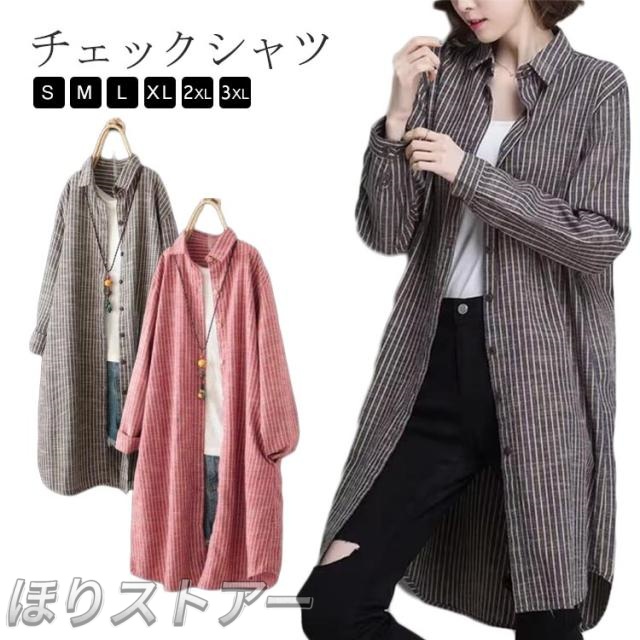 チェックシャツ トップス ロング 春秋 シャツ チェック柄 ロング丈 長袖 ビックシルエット チェック ブラウス 襟付き シンプル カジュアル ゆったり 大きいサイズ チェックシャツ 体型カバー 春 秋冬 マルチチェックシャツ