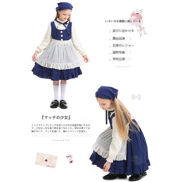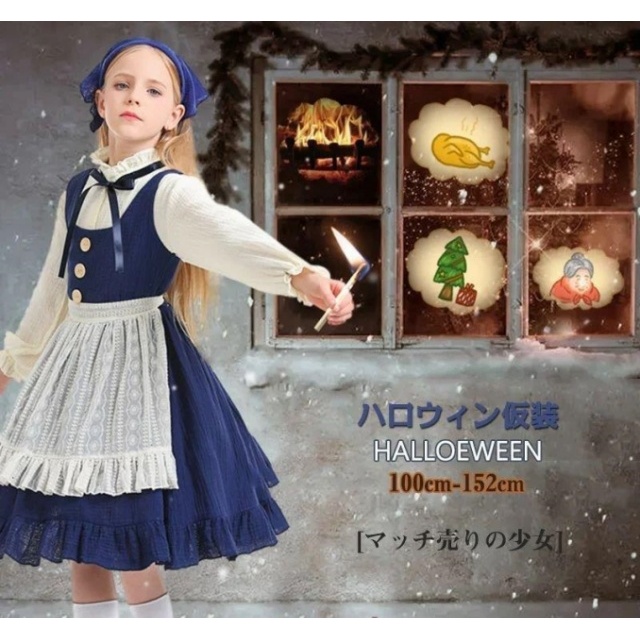 ハロウィン コスプレ ハロウィン衣装 ワンピース ドレス マッチ売りの少女 童話 コスプレ Halloween 子供用 キッズ ワンピース コスチューム 仮装 メイド服 4点送料無料