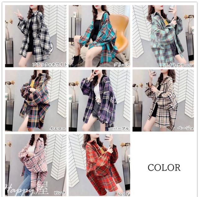 チェックシャツ ネルシャツ レディース レディースファッション 続々登場 ブラック+ホワイト グリーン ライトグリーン イエロー パープル ベージュ レッド ピンク S M L XL 2XL 3XL