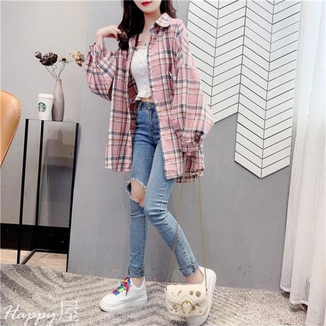 チェックシャツ ネルシャツ レディース カジュアル シャツ 長袖 トップス 大きいサイズ アウター 羽織り レトロ レイヤードゆったり 韓国風 通勤OL 春秋 着痩せ