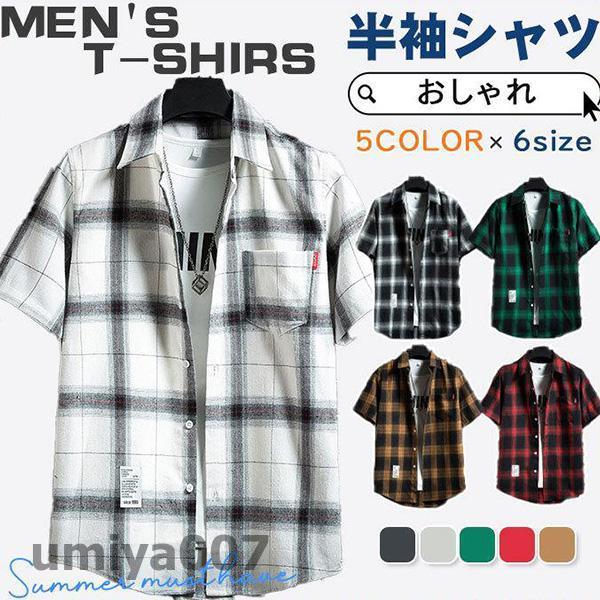 半袖シャツ メンズ カジュアルシャツ チェック柄 おしゃれ 紳士服 開襟 通勤 通学 大きいサイズ スリム 涼しい 夏 父の日 30代 40代 50代 春コーデ