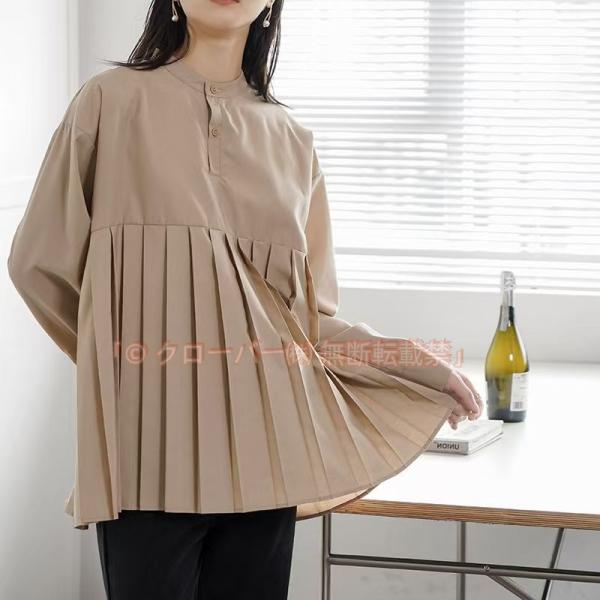 ブラウス レディース プリーツ チュニック ロングシャツ 長袖 シャツブラウス クローバー株式会社 夏 長袖 きれいめ 大きいサイズ トップス 立ち襟 大人 通勤 ゆったり 30代