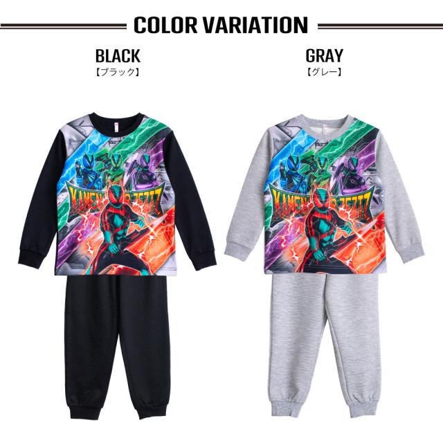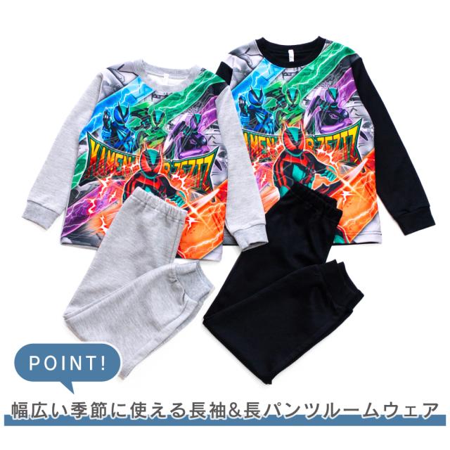 仮面ライダーゼッツ 光るパジャマ ボーイズ 肌に触れる内側 綿100% 長袖 スウェット セットアップ ブラック グレー 100 110 120 130 ギフト プレゼント 林間学校 修学旅行 47642
