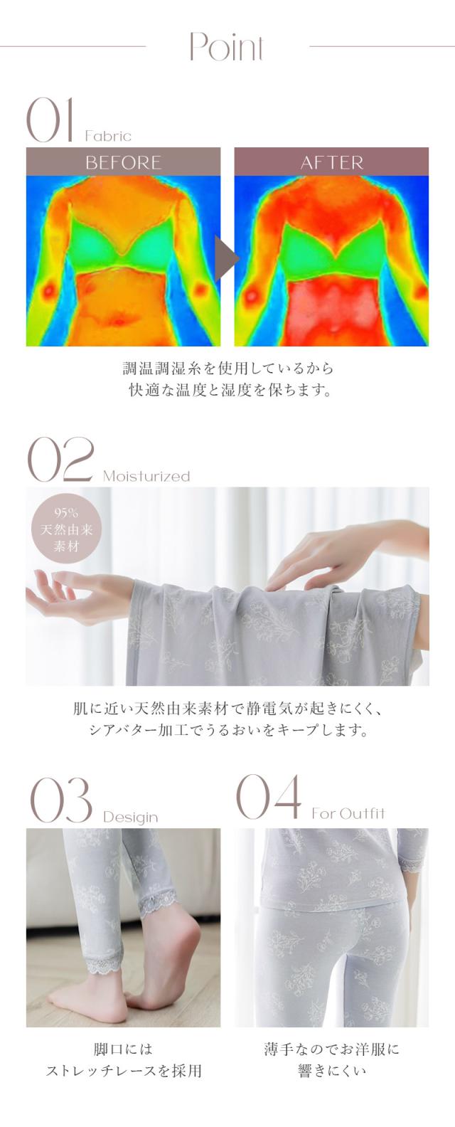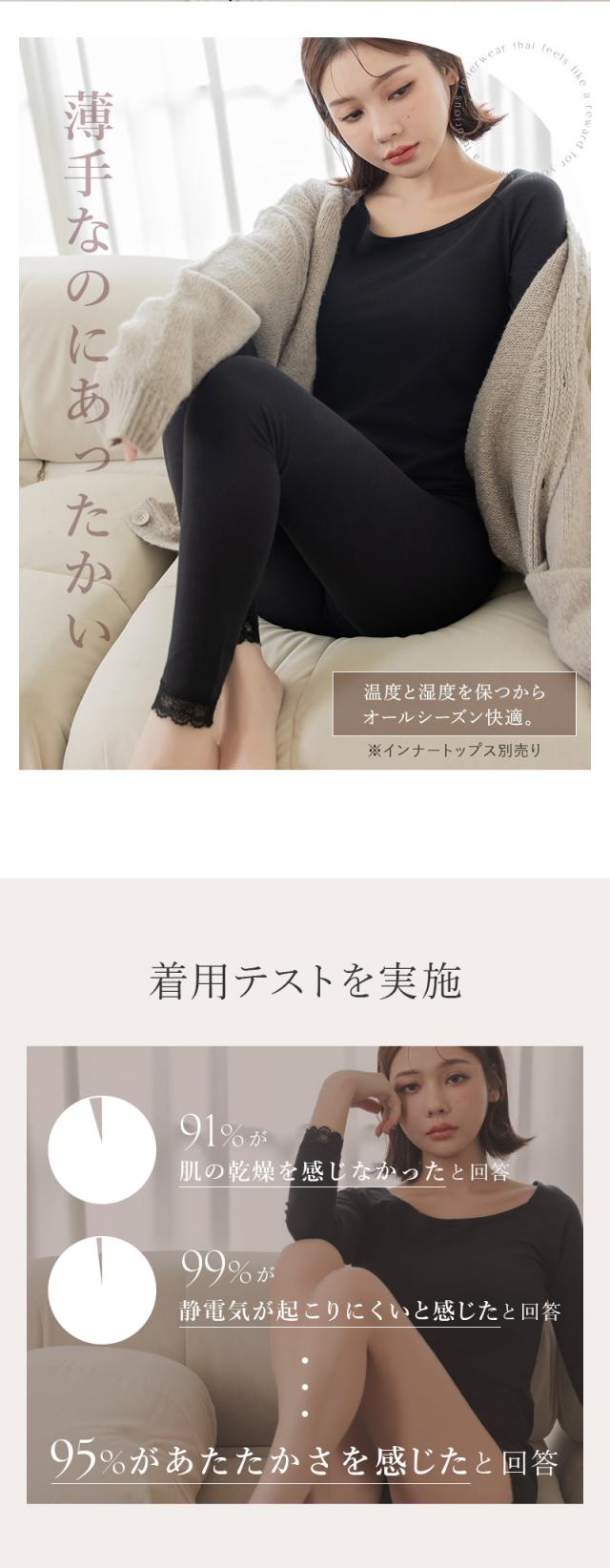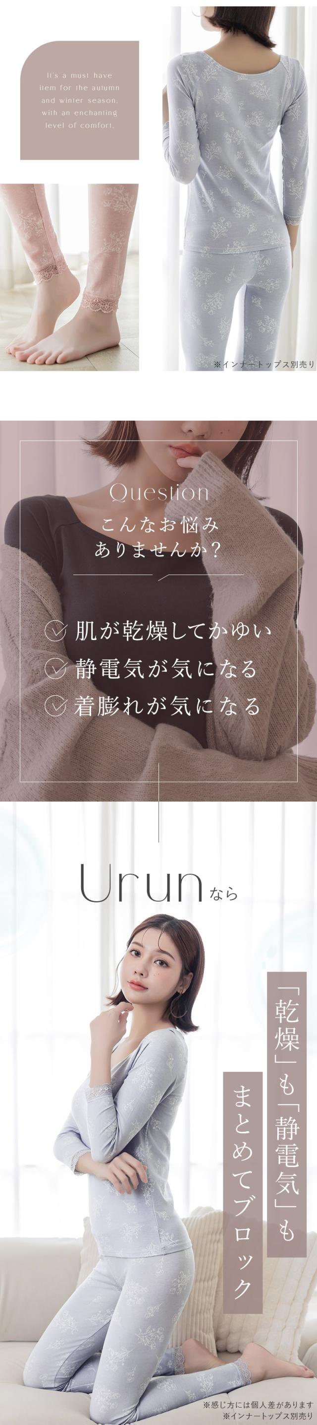 tu-hacci Inner Collection 腹巻きレギンス単品 しっとり、なめらか。 うるおい仕立てのモイストインナー《Urun》 乾燥しやすい季節でも、 「素肌のうるおい」と「あたたかさ」を両立。 それが《Urun》。 しっとりなめらかな肌ざわりで、 まとうたびに心まで満たされる、肌ケアインナーです。 【こんな方におすすめ】 ・肌が乾燥してかゆくなりやすい方 ・静電気が気になる方 ・着ぶくれを避けたい方 ■ご褒美のような“あったかインナー” ・調温調湿糸を使用し、季節を問わず快適な温度と湿度をキープ ・静電気が起きにくい綿混の天然由来素材を採用 ・シアバター加工で、うるおいを逃がさない ・腹巻仕様で冷え対策にも◎ ■ファッションの邪魔をしないデザイン ・下半身をすっぽり覆う十分丈 ・着ぶくれせず、アウターにラインが響きにくい薄手設計 ・ナプキンやカイロを入れられる内ポケット付き ※カイロは使用方法を守り、肌に長時間当てすぎないようご注意ください。 脚口のストレッチレースで見た目も上品に。 プチギフトにもおすすめです。 ≫ ギフトラッピングはこちら ≪ |