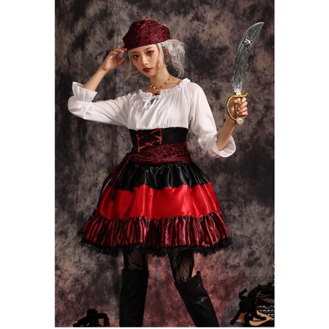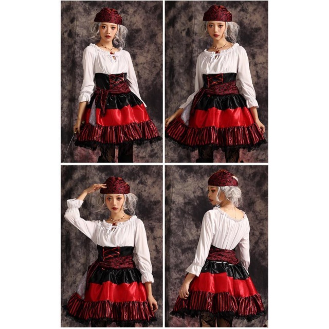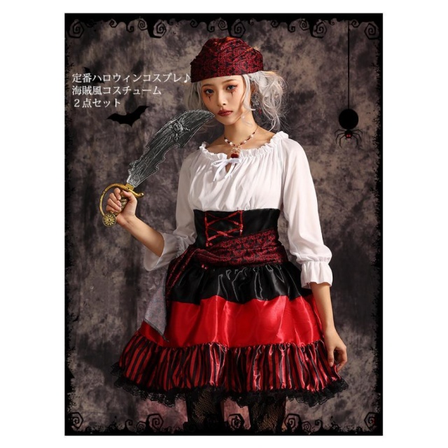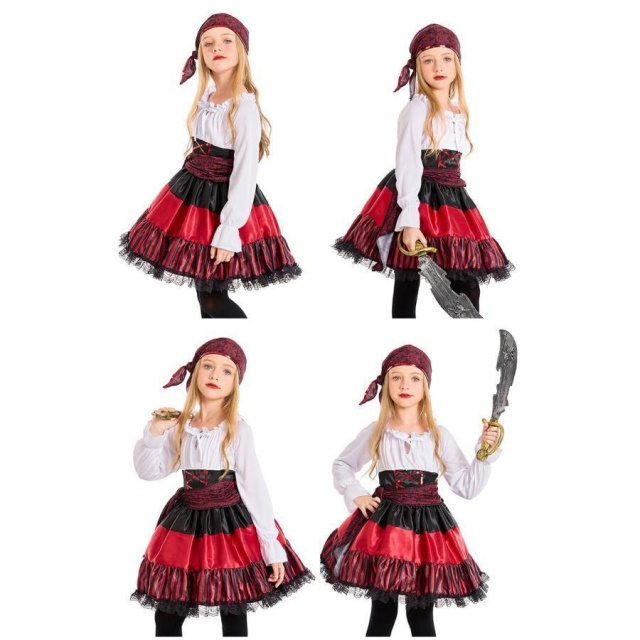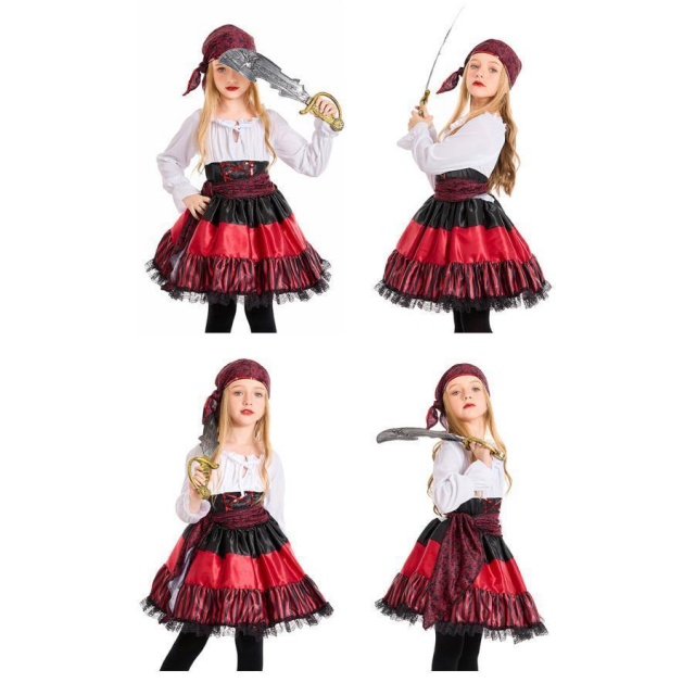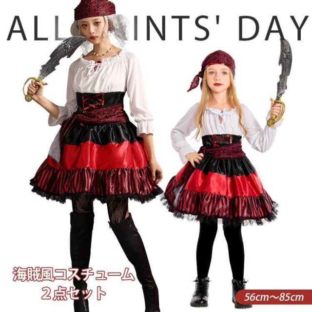 ハロウィン コスプレ 子供 親子 海賊風 コスチューム ハロウィン 仮装 衣装 キャラクター スカーフ ワンピース 2点セット送料無料