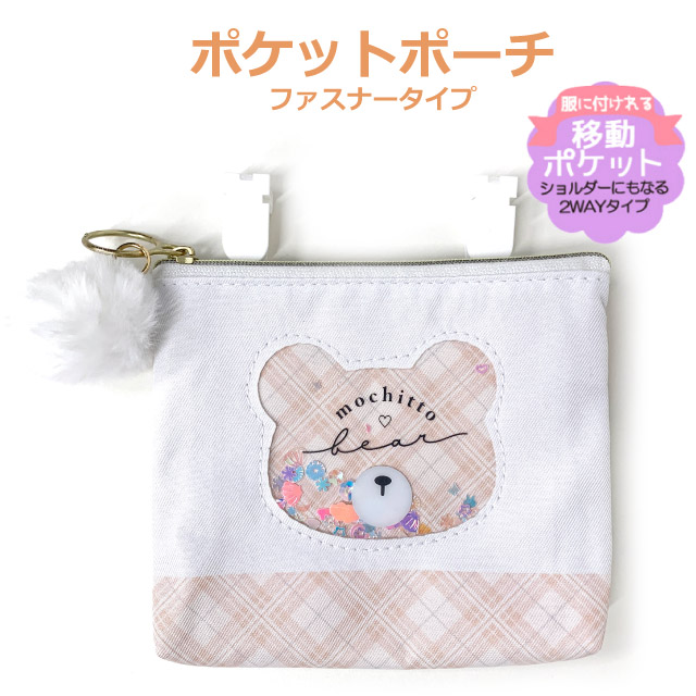移動ポケット 女の子 ショルダー ポシェット ポケットポーチ クリップポーチ マルチ ポーチ マルチポケット 子ども キッズ 可愛い ねこ くま クマ ベア キラキラ ふわふわ チャーム 入園 入学 プレゼント 2way 取り外し 小学校 小学生 女子 おしゃれ ファスナー 133270
