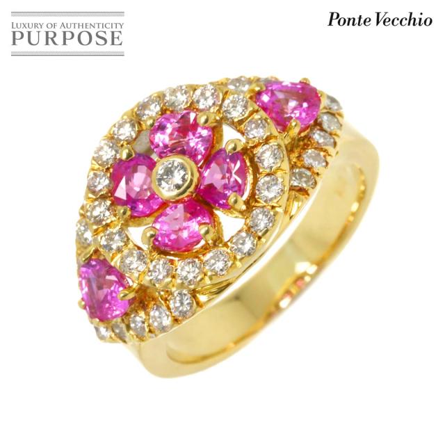 ピンクサファイヤが目を惹く華やかなポンテヴェキオのリングです。フラワーモチーフにダイヤも施され、指元を美しく演出してくれます。