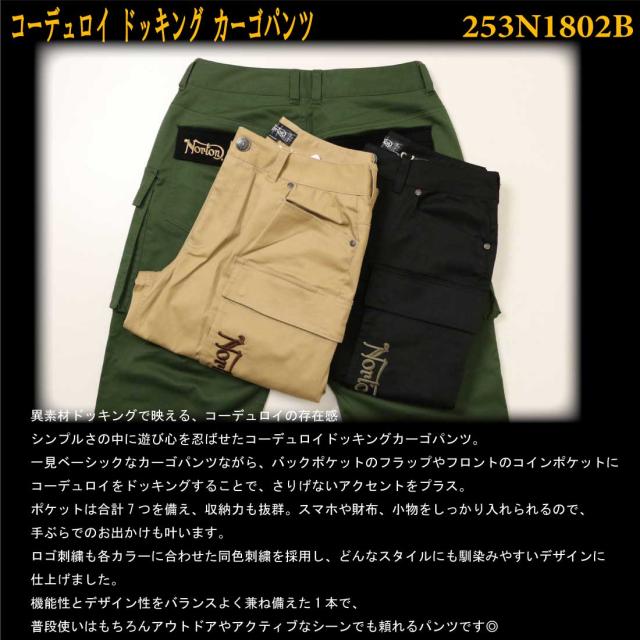 Norton ノートン 服 カーゴパンツ 253N1802B コーデュロイ ドッキング カーゴパンツ ロゴ 刺繍 メンズ アメカジ バイカー フラップポケット