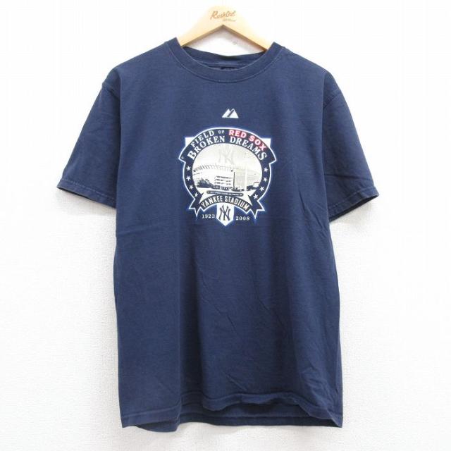 【商品名】 M★古着 マジェスティック 半袖 ビンテージ Tシャツ メンズ 00年代 00s MLB ニューヨークヤンキース ジョニーデイモン 18 コットン クルーネック 紺 メジャーリーグ ベースボール 野球