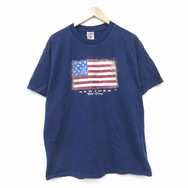 【商品名】 XL★古着 フルーツオブザルーム 半袖 ビンテージ Tシャツ メンズ 00年代 00s ラリー 企業広告 コットン クルーネック 薄紺