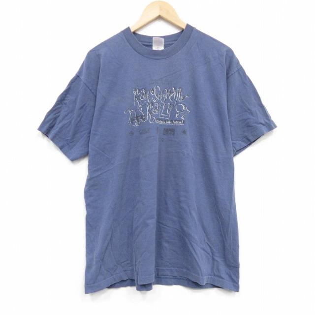 古着 フルーツオブザルーム 半袖 ビンテージ Tシャツ メンズ 00年代 00s ラリー 企業広告 コットン クルーネック 薄紺 ネイビ 中古 古着