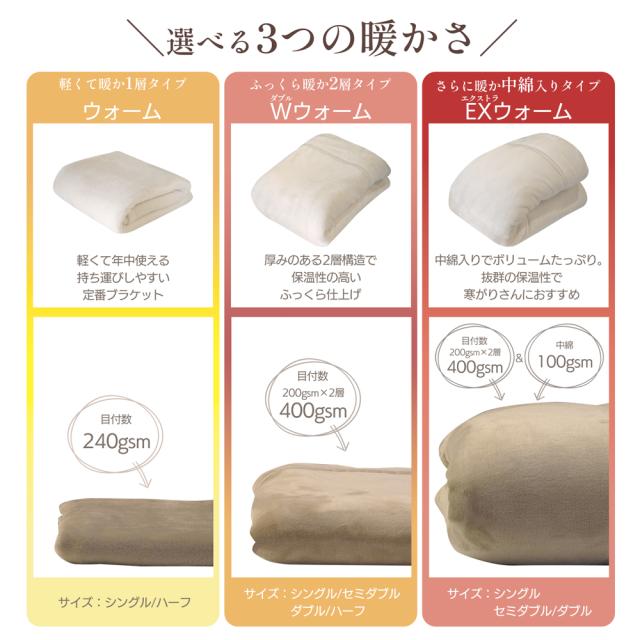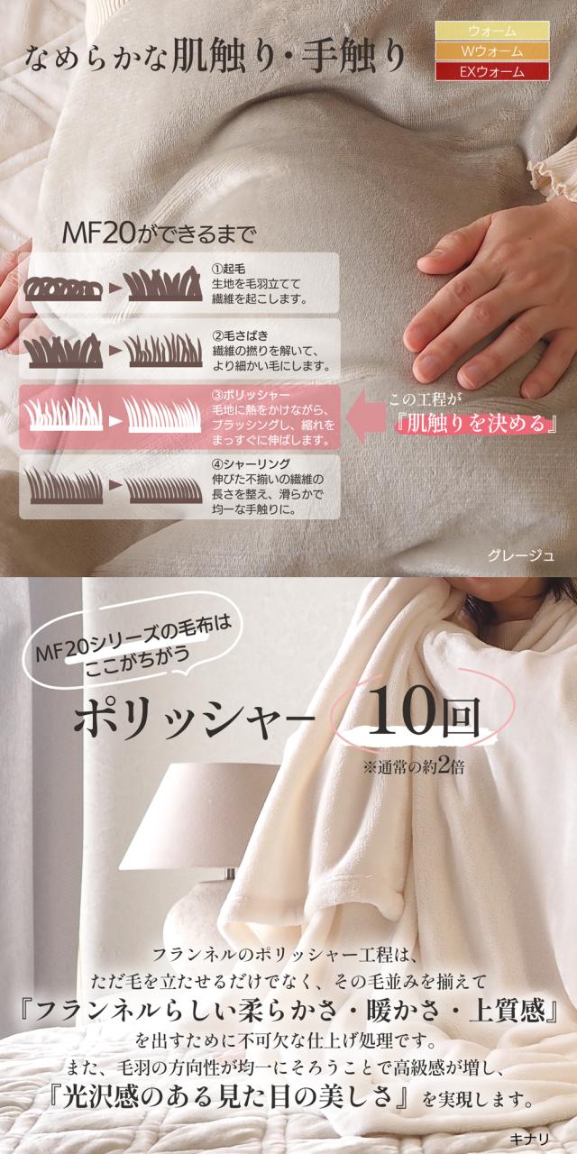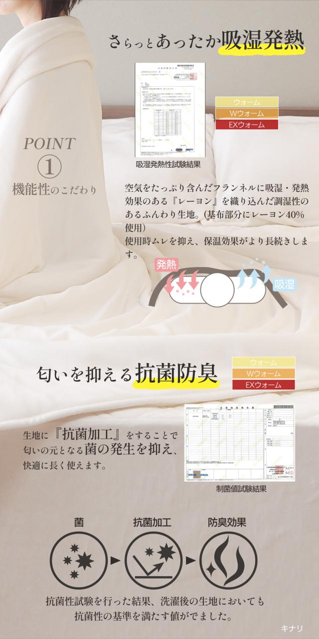 二枚合わせ ハーフ ブランケット フランネル Wウォーム ハーフ (100×140cm) 抗菌防臭 吸湿発熱 MF20