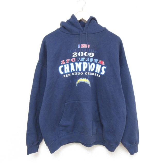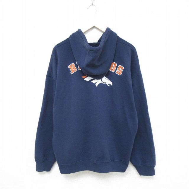 古着 長袖 フルジップ スウェット パーカー メンズ NFL デンバーブロンコス 大きいサイズ オレンジ他 アメフト スーパーボウル 中古 古着