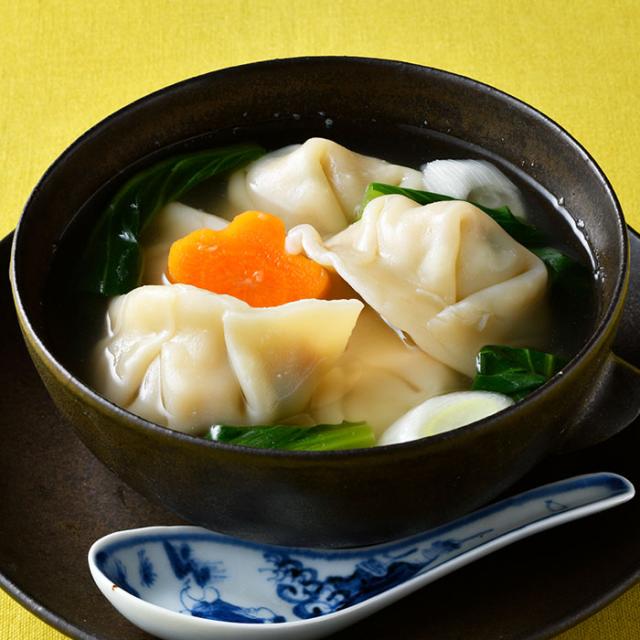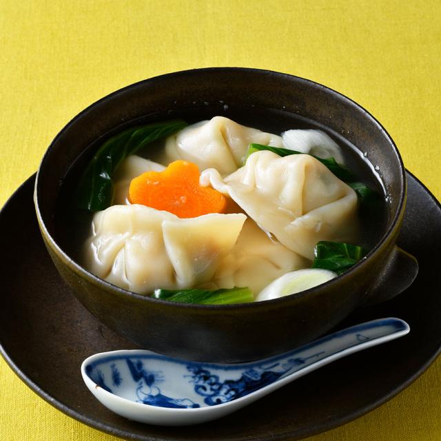 一家三代に受け継がれる中国のレシピと伝統手法が息づく逸品。じんわりやさしい鶏ガラスープに浮かぶ水餃子はもっちり肉厚で、中には新鮮な岩中豚のモモ肉を生かしたまろやかな旨みの餡と手刻み野菜がたっぷり。無化調&にんにく不使用ゆえ滋味深さを感じられる。