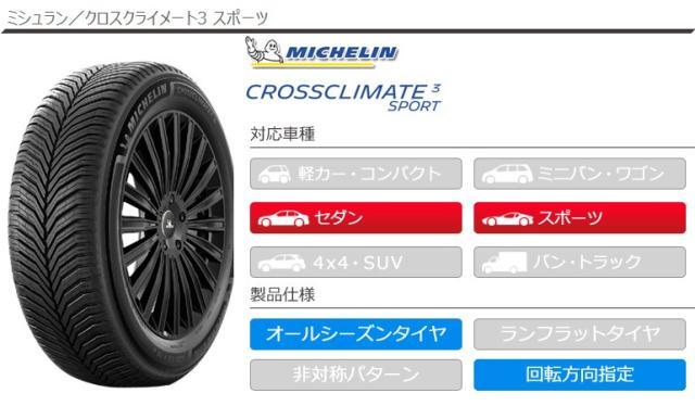 245/40-18 2454018 18インチ als1221micrc3sp CROSSCLIMATE3 SPORT MICHELIN クロスクライメイト ミチェリン ミシェラン 正規品 雪も走れる夏タイヤ CROSSCLIMATE3 CROSS オールウェザータイヤ 全天候 雪道 タイヤ一番 タイヤサイズ 溝 タイヤ交換 タイヤこうかん タイヤくみかえ 組み換え タイヤ取付対象 タイヤ取付可能 タイヤ交換可能 195263 allseasontire tiret1p