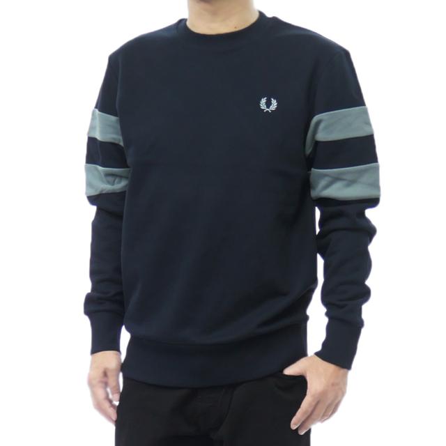 セールAW FRED PERRY フレッドペリー トレーナー メンズ コットン 綿100% M1731 / PEACHED TIPPED SLEEVE SWEATSHIRT ネイビー