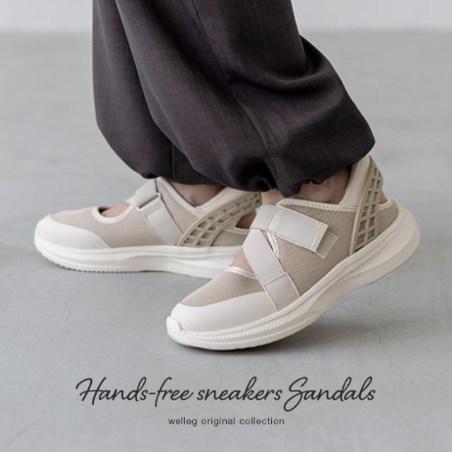 スニーカー ベーシックスニーカー ローカットスニーカー ローカット 短靴 カジュアルシューズ フラットシューズ ぺたんこ靴 スポサン スポーツサンダル オールジェンダー ラウンドトゥ ラウンド ハンズフリー スライド スニーカーサンダル 手を使わずに履ける 立ったまま履ける ベルクロ 面ファスナー 厚底 ボリュームソール ラウンドヒール 軽量 軽い 超軽量 低反発クッション 低反発 クッション ふわふわ やわらかい 柔らかい 蒸れにくい 蒸れない むれにくい 屈曲性 すべりにくい 痛くない 歩きやすい 疲れない 疲れにくい 大きいサイズ 小さいサイズ 幅広 アウトドア キャンプ 山 川 カジュアル旅行 トラベル 帰省 旅行 レジャー デート おでかけ お出かけ カフェ ショッピング 買い物 お散歩 ワンマイル 散歩 お迎え 公園 送り迎え 子育て 子連れ 屋外 外履き デイリー 日常 普段使い 日常使い 普通履き ドライブ 運転 車 ドライビングシューズ 5.5cmヒール 5.5センチヒール ミドルヒール 3E 黒 ブラック 肌色 ベージュ S 22cm 22.5cm M 23cm 23.5cm 2L LL 25cm L 24cm 24.5cm 春 夏 秋 冬 布 クロス 布帛 outletshoes アウトレットシューズ welleg ウェレッグ