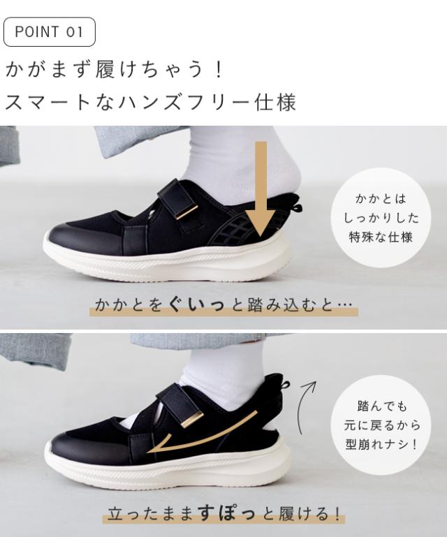お出かけの第一歩で手間取らない、立ったまま手を使わずに履ける便利シューズ!