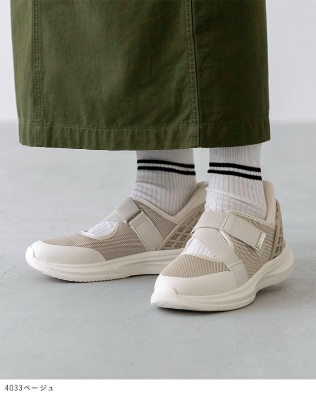 軽やかなメッシュ素材でサンダル感覚で履けるのに、つま先は覆われているからスニーカーの安心感もプラス。