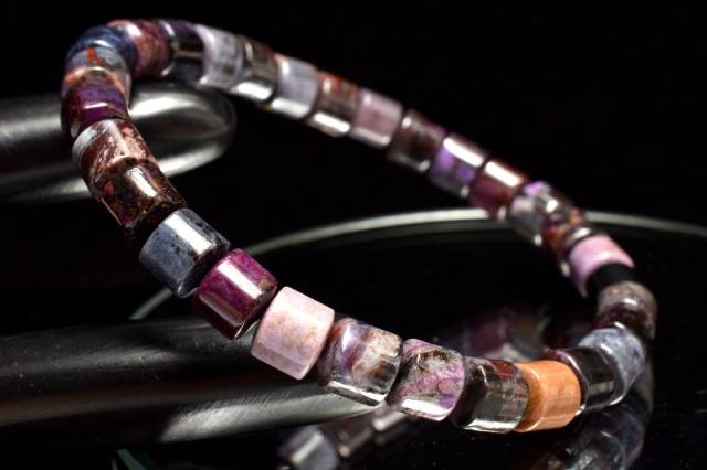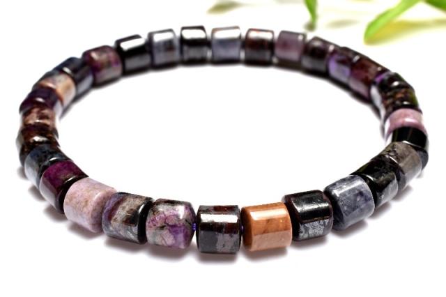 【1点物】高発色◇癒やしの石 スギライト(杉石) 5.5-6x6.5mm チューブ ブレスレット 厄除け【ネコポス送料無料】_MA7997