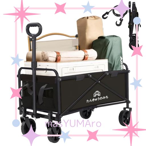 「高耐荷重構造&子供も乗せて大容量」驚異の約100kg耐荷重を実現!キャンプギアや大量の買い物はもちろん、お子様も安心して乗せられます (こども乗せれる)。連結フレーム構造で荷重を分散し、安定性抜群。大容量設計で、アウトドアから日常の荷物運びまで頼れる相棒に。荷物カート、キャンプワゴンとしての実力を発揮。