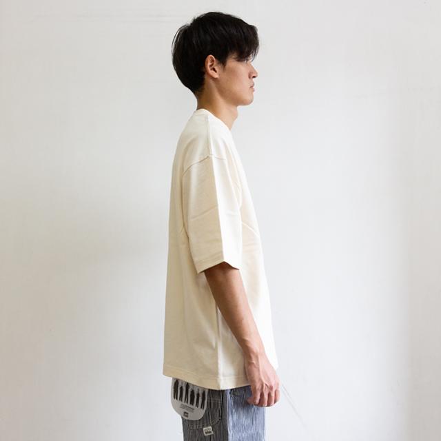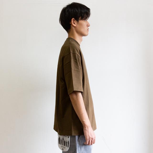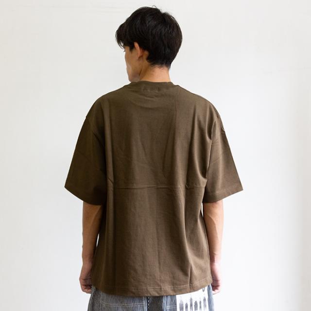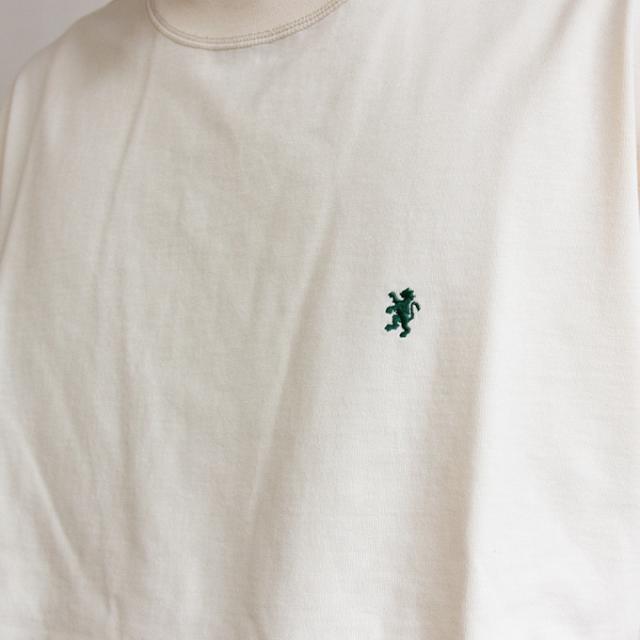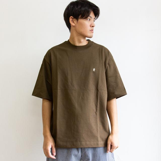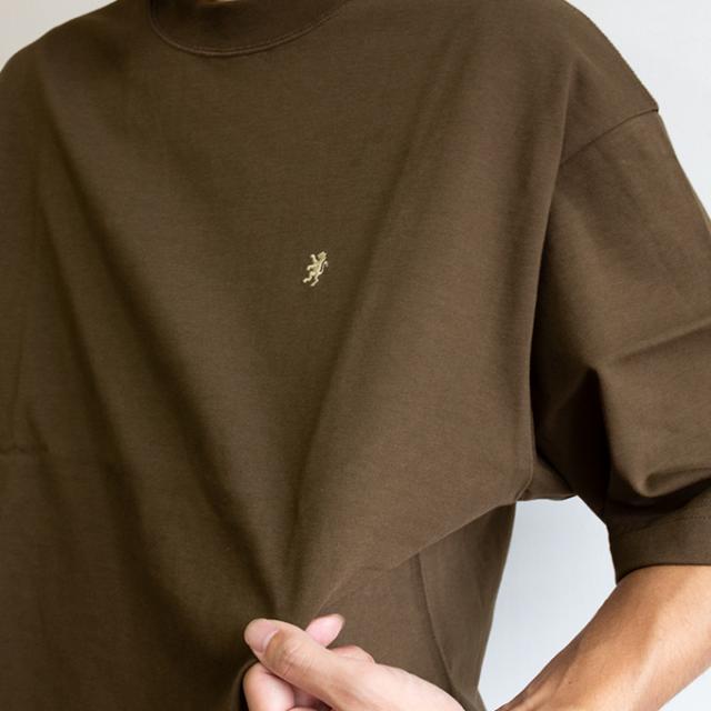 ボックスシルエットに3本針のステッチと胸下のブランドロゴ刺繍がポイントの半袖Tシャツ。