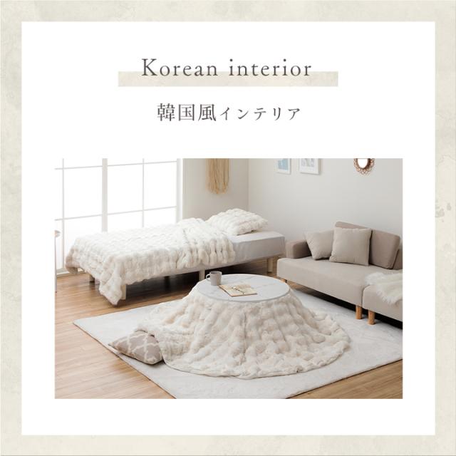 ■ もこもことしたシルエットが可愛い、ラビットファー調のこたつ掛け毛布です。