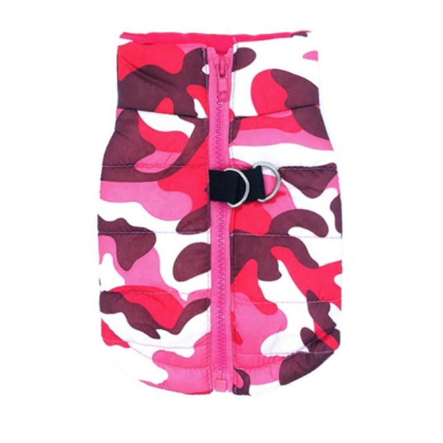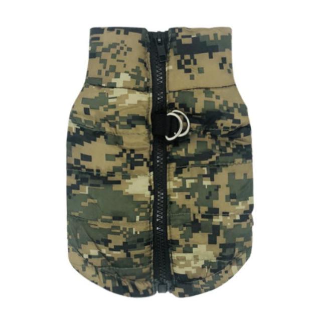 【送料無料】ドッグウェア 背中開き ダウン 防寒コート 迷彩柄 犬服 ジャケット 袖なし 裏起毛なし ハーネス ベスト 小型犬 中型犬 秋 冬 防寒 防水 軽量 撥水 着脱簡単 背中ファスナー付き 中綿ジャケット 暖かい
