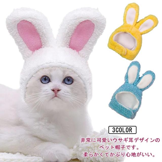 犬 猫 ウサギの帽子 うさぎ かぶりもの 3色 小型犬 干支 ハロウィン トイプードル チワワ ポメラニアン シュナウザー 年賀状 お正月 パーティー 送料無料