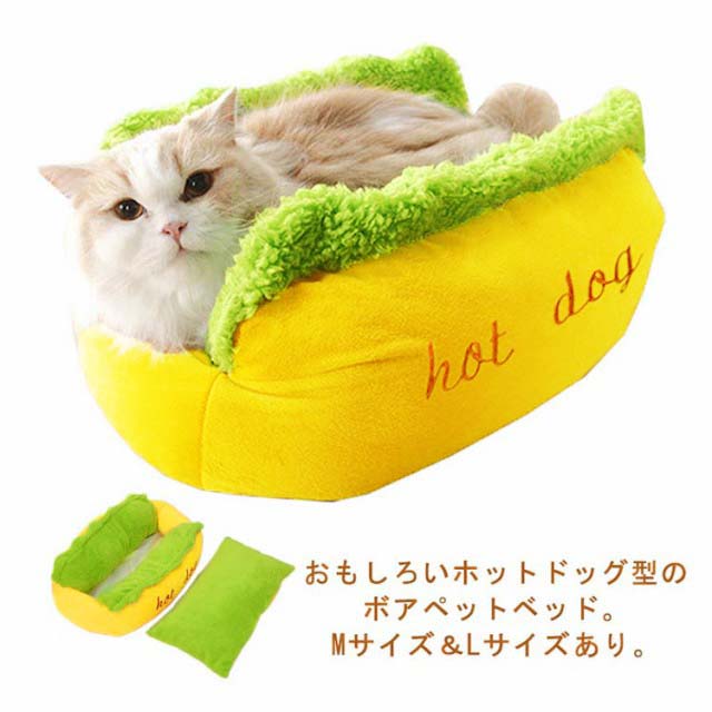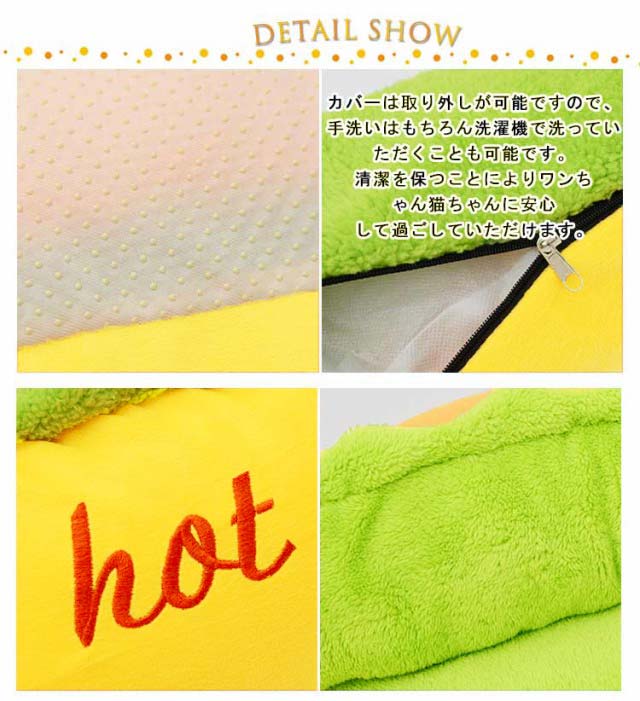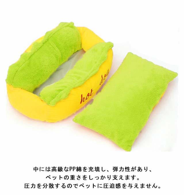 | おもしろいホットドッグ型のボアペットベッド。Mサイズ&Lサイズあり。 柔らかくフワフワとした感触でペットの体を包み込むような暖かさを提供しており、ペットちゃんに暖かい環境を与えます。 中には高級なPP綿を充填し、弾力性があり、ペットの重さをしっかり支えます。圧力を分散するのでペットに圧迫感を与えません。 ペットベッドは全包囲にポリエステル綿をたくさん使用していますので、型崩れしにくく、アゴ乗せもしやすくなっております。 カバーは取り外しが可能ですので、手洗いはもちろん洗濯機で洗っていただくことも可能です。清潔を保つことによりワンちゃん猫ちゃんに安心して過ごしていただけます。 噛み癖爪とぎ癖のあるワンちゃん猫ちゃんでも破れにくく壊れにくい素材のため、長年愛用していただけます。 | |