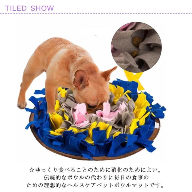 | ☆ゆっくり食べることのために消化のためによい。伝統的なボウルの代わりに毎日の食事のための理想的なヘルスケアペットボウルマットです。 ☆サイズと防水素材☆:フリース(胃腸に無害)折りたたみ式収納便利。防水性が優れていたため、洗濯機で約20分洗うと綺麗になれます。もちろん、手洗いおすすめです。 ☆滑り止め付きと早食い止め☆:収納力が抜群だけじゃなくマットの底には滑り止めのデザインで、いたずらや力強い子にも耐えられますので、あっちこっちに移動される心配をする必要がありません。飼い主は、犬に合わせて食事場所を手配することができます。余分なエネルギーを解放し、あなたのペットを落ち着かせてください。 ☆犬の豆知識☆:愛犬の鼻と脳を自然に食べ物のための狩猟を模倣することによって動作させる犬の鼻づまりマットは、自然の餌食技術を奨励します。今まで犬とのコミュニケーション不足だなと思っていた人や、楽しいこともなくただのんびりと過ごしていただけの愛犬の毎日にちょっぴり刺激を与えてくれるでしょう。勿論猫ちゃんでも使えます。 ☆楽々の使え方(嗅覚訓練)☆:餌をマットの中に隠して、視覚ではなく餌の匂いを嗅ぎ付けながらターゲットを見つける動物の狩猟行為で愛犬の頭脳と鼻を訓練しましょう!同時に運動不足の問題やストレスを解消できます。 ☆オートドアでも楽しめる☆:お出掛けの時に、食いちぎる癖がある犬の注意力を他のものからこのおもちゃに引き付ける効果があります。室内だけでなく、庭、公園、郊外、ビーチ、芝地などでも利用できます。楽に持ち運べるので、アウトドアのご利用もおすすめです。運動不足の子はダイエットしないと不健康になりがちです。この毛布はペットの動物野性を少しずつ蘇らせる効果があります。 | |