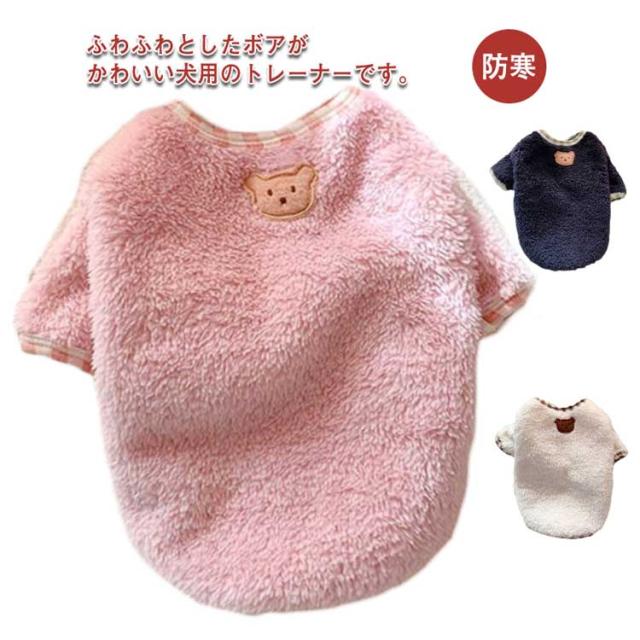 犬 服 冬 ドッグウェア ペット服 ペットウェア ペット用品 防寒 タンクトップ ボア 裏起毛 くまちゃん トレーナー おしゃれ 無地 シンプル 秋冬 かっこいい かわいい もこもこ ふわふわ 小型犬 中型犬 ピンク 白 ホワイト お散歩 暖かい 防寒着 送料無料