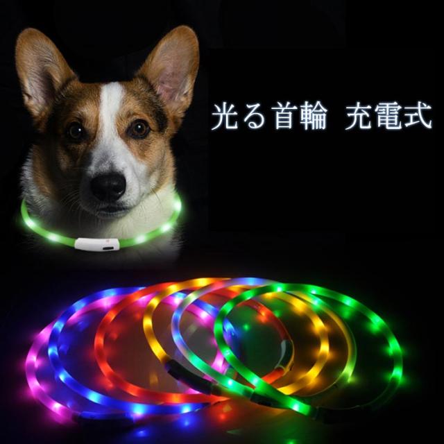 送料無料 光る首輪 充電式 犬 首輪 光る ペット LED首輪 猫 犬 ペット用品 軽量 ドッグ用品 光る首輪 レインボー LED ライト 夜間 安全 お散歩 USB充電式 小型 中型 大型 発光首輪 事故防止 サイズ調節可能