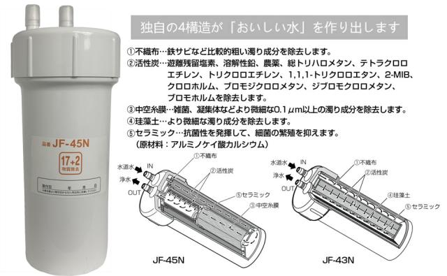 浄水器用 互換カートリッジ JF-45N 交換用浄水カートリッジ タッチレス水栓 キッチン用水栓 17+2物質除去タイプ