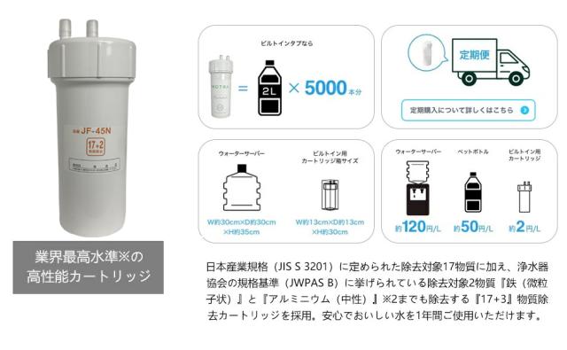 関連検索:JF-45N, JF45N, 浄水カートリッジ, 浄水器カートリッジ, 交換用, 互換品, タッチレス水栓, 非接触水栓, 17+2物質除去, 高性能タイプ, 残留塩素除去, 濁り除去, 雑用水, 除去性能, フィルター, 取り付け簡単, 純正同等品, コストパフォーマンス, お得, カートリッジ交換時期, 水質改善, キッチン用, 浄水器パーツ, キッチン部品, 水道水, 水栓カートリッジ, 交換時期サイン