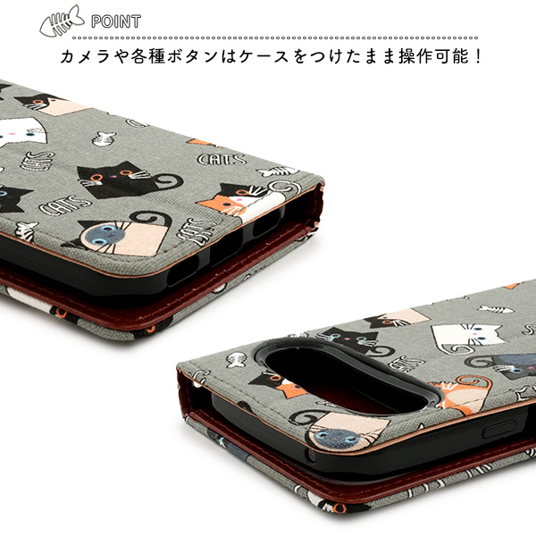 食いしん坊な猫ちゃん達を全面にプリントした生地を使用した手帳型ケースです。 衝撃やキズなどからスマートフォンを守るのはもちろん カメラや各種ボタンなど、ケースに入れたまま操作可能です。 内部はソフトケースなので着脱が簡単! 横開きタイプなので、手帳のように使うことができます。 内側にはカードポケットとサイドポケットが付いています。 また、ストラップとストラップホール付きです。 カラーはベージュとグレーの2色からお選びいただけます。 | ||||||||||||||
